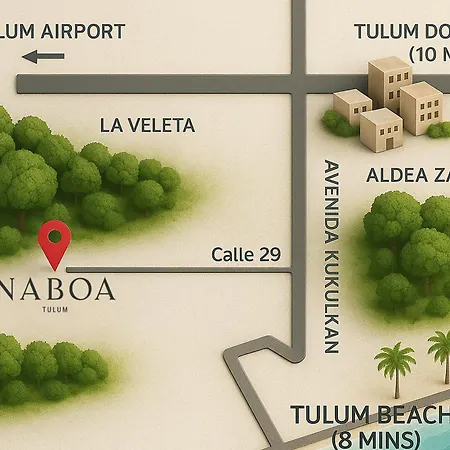 Kiralık bisiklet ile ortak alanlarda Wi-Fi sunan Naboa Hotel Tulum, Tulum şehrinde Las Palmas Halk Plajı'a 4 km mesafede yer almaktadır. Bu otel Tulum Maya Harabeleri'a 6 km uzaklıktadır.